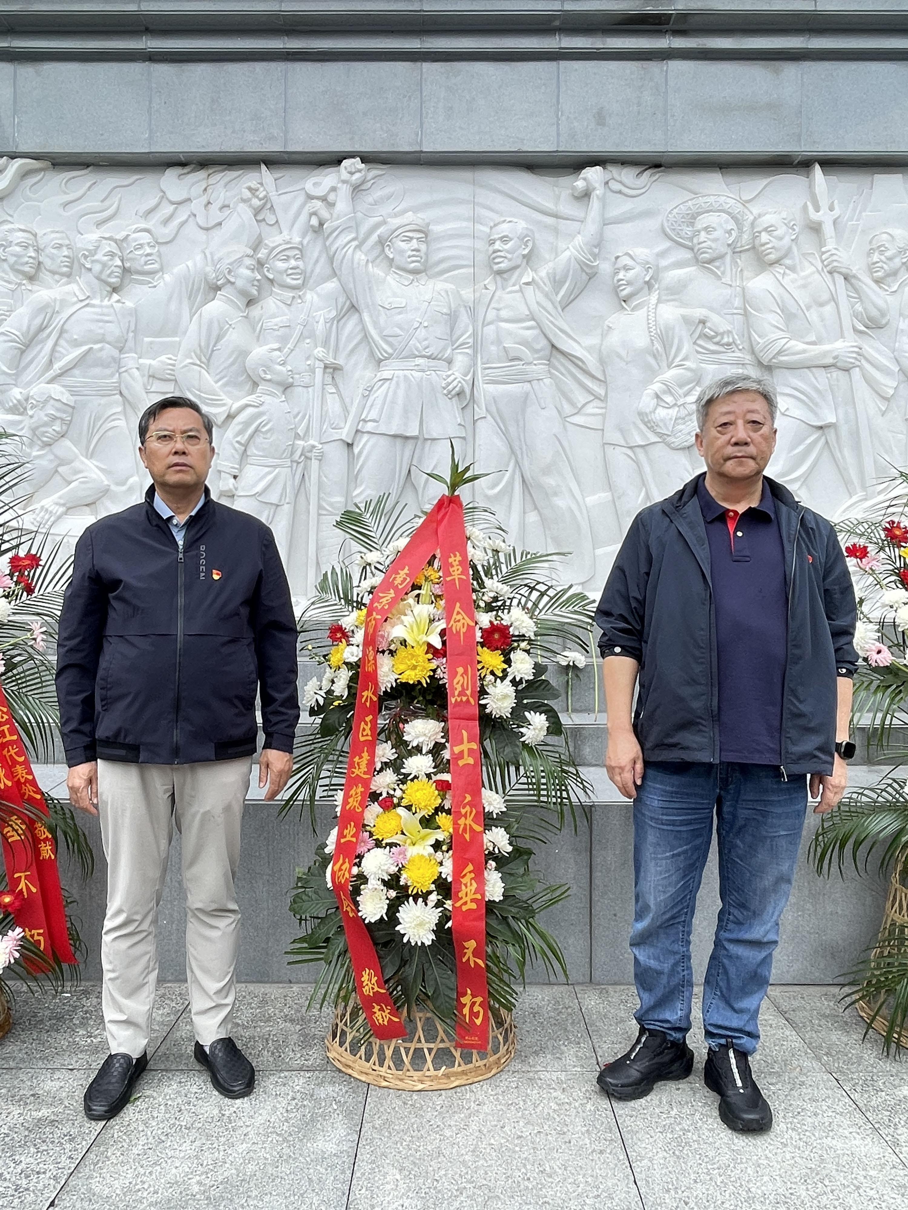 2025年10月17日,芮敬棟與南京明輝公司韓力副總在金寨紅軍廣場(chǎng)進(jìn)獻(xiàn)花籃 -